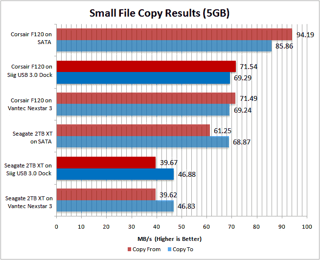 When it comes to the performance of the dock, there is not much not to like. It is just as fast as your typical SuperSpeed USB enclosure so there really is no trade-off here to speak of. Actually, the SIIG was slightly faster than our Vantec Nexstar 3 but the differences were so minor as to be easily accounted for by controller batch to batch variances.