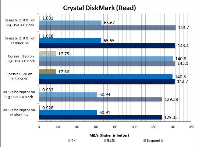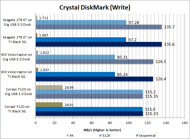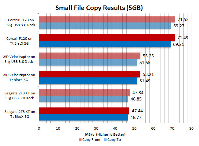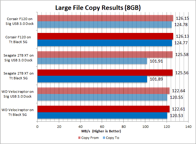 Just as expected, there really is not much of a difference between what an ASMedia-based USB to SATA hard drive dock (such as the SIIG) can do and what the BlacX 5G can do when you use hard drives. Even fast hard drives are not going to hit the performance wall of this drive dock, and unless I had tested using an ultra-high performance solid state drive would I have even known this wall existed.